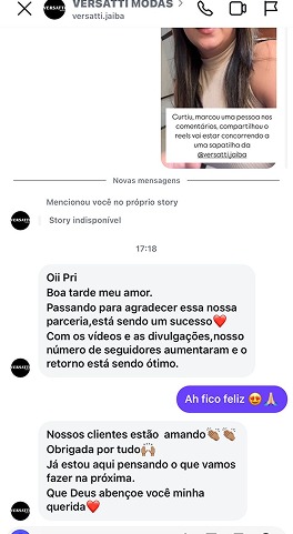 Já tive o prazer de trabalhar com diversas empresas parceiras em Jaíba, Janaúba e região, contribuindo com campanhas que geram visibilidade, engajamento e resultados. Levo cada marca que confia no meu trabalho para dentro da minha rotina de forma orgânica, respeitando sua identidade e valorizando o que ela tem de melhor. Acredito no poder do conteúdo bem feito, com propósito, beleza e estratégia — e é isso que entrego em cada projeto.